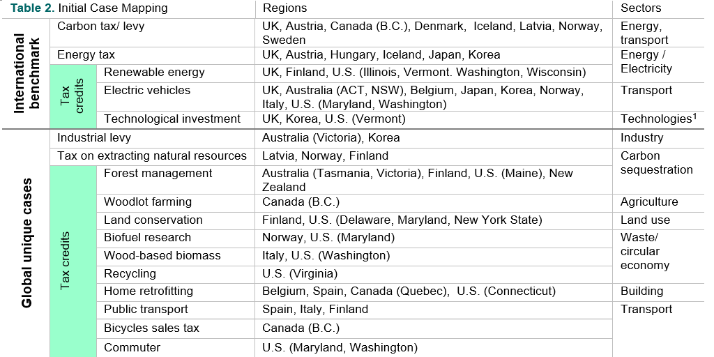 Typology analysis of fiscal Instruments for carbon abatement