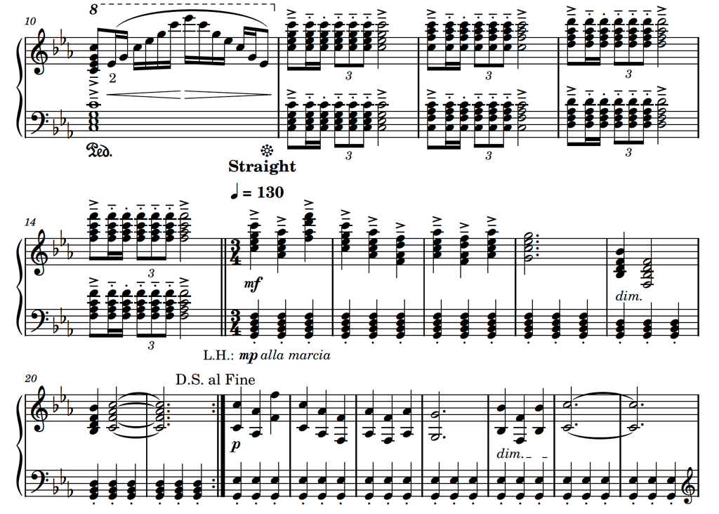 This music runs with an étude yet forceful style, which also expresses the composer’s eager to return to her usual state of work and life. It is written in C Minor key to deliver a degree of sadness and darkness in the emotions in the movements of the music.The fast-paced marches throughout this piece of music represent the intense emergency rescuing works carried out every minutes by the keyworkers at hospitals. The composer dedicates this song as a tribute to their diligence.